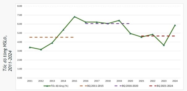 Tốc độ tăng năng suất lao động Việt Nam có xu hướng giảm dần. Số liệu: Viện Nghiên cứu quản lý kinh tế Trung ương (CIEM)