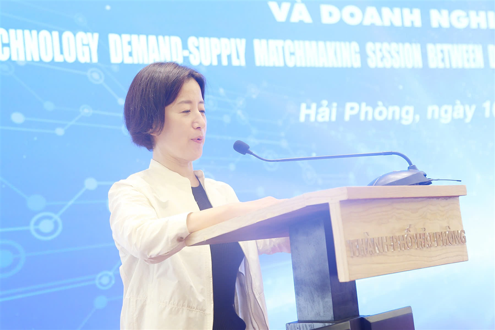 Bà Roh Eun Joo, Giám đốc Trung tâm Hợp tác Doanh nghiệp Đổi mới thuộc Viện Khoa học và Công nghệ Hàn Quốc (KIST) chia sẻ: Từ những năm 1970, thông qua phát triển công nghệ chuyển mạch số và công nghệ sợi quang, Hàn Quốc đã xây dựng được năng lực cạnh tranh toàn cầu trong lĩnh vực công nghệ thông tin. Dựa trên kinh nghiệm nghiên cứu và phát triển công nghệ công nghiệp đó, Viện KIST đã hợp tác với Chính phủ Hàn Quốc góp phần thành lập Viện Khoa học và Công nghệ Việt Nam - Hàn Quốc (VKIST) tại Việt Nam vào năm 2015. Trong tương lai, Viện KIST sẽ tiếp tục đẩy mạnh hợp tác với các doanh nghiệp công nghiệp tại thành phố Hải Phòng thông qua Viện VKIST. Bà Roh Eun Joo hi vọng rằng tại Phiên kết nối này sẽ có nhiều ý tưởng và đề xuất thiết thực nhằm hiện thực hóa mục tiêu “Đổi mới không giới hạn -Vươn ra mình ra biển lớn” của Techfest Hải Phòng 2025, tạo cơ hội để doanh nghiệp, viện nghiên cứu và cơ quan quản lý của Việt Nam - Hàn Quốc chia sẻ kinh nghiệm, công nghệ và mở rộng hợp tác chiều sâu.