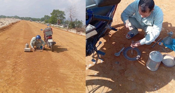 Lu lèn, thí nghiệm độ chặt K lớp vật liệu đất đắp.