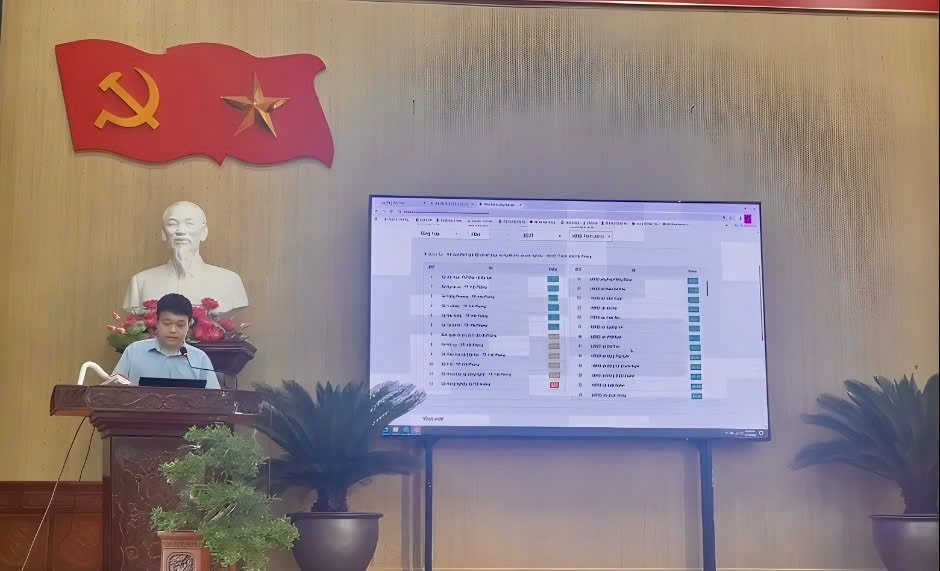 Đồng chí Đào Văn Thắng, Phó Giám đốc Trung tâm CNTT&TT, Sở Khoa học và Công nghệ TP Hải Phòng hướng dẫn cán bộ, công chức, viên chức phường Tân Hưng xử lý hồ sơ DVC trực tuyến