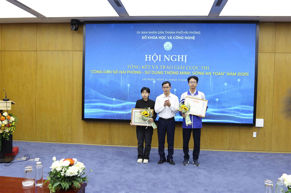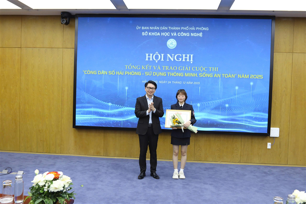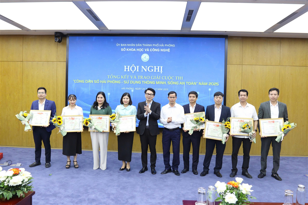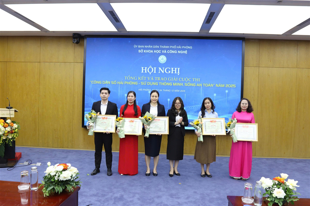Chiều 24/12, tại Trung tâm Hội nghị - Biểu diễn thành phố Hải Phòng, Sở Khoa học và Công nghệ (KH&CN) tổ chức trao giải Cuộc thi trực tuyến “Công dân số Hải Phòng - Sử dụng thông minh, sống an toàn” năm 2025. Tham dự có đồng chí Nguyễn Cao Thắng, Ủy viên Thành ủy, Giám đốc Sở cùng đại diện các sở, ban, ngành, Ủy ban nhân dân các xã, phường, đặc khu trên địa bàn thành phố và các tập thể, cá nhân đoạt giải tại Cuộc thi.
