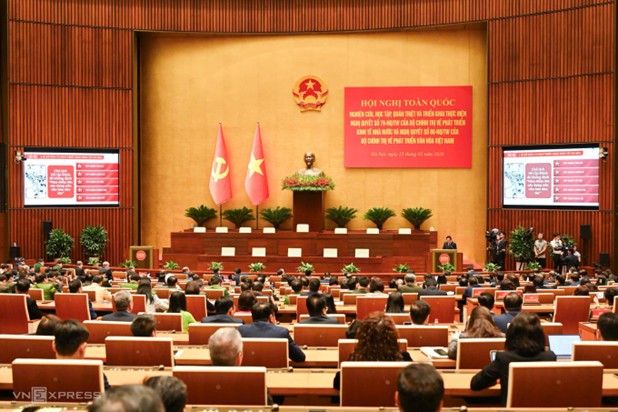 Sáng 25/2, Bộ Chính trị, Ban Bí thư tổ chức hội nghị toàn quốc nghiên cứu, học tập, quán triệt và triển khai thực hiện Nghị quyết 79 về phát triển kinh tế nhà nước và Nghị quyết 80 về phát triển văn hóa Việt Nam. Tổng Bí thư Tô Lâm, Chủ tịch nước Lương Cường, Thủ tướng Phạm Minh Chính, Chủ tịch Quốc hội Trần Thanh Mẫn, Thường trực Ban Bí thư Trần Cẩm Tú dự hội nghị tại hội trường Diên Hồng, Nhà Quốc hội; hơn 2 triệu đại biểu tham dự tại các điểm cầu.
