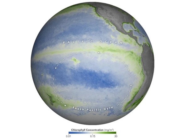"Màu xanh thẳm này là biểu hiện vĩ mô của sự khan hiếm sinh vật biển. Chúng tôi không thấy một con cá hay con tàu nào khác kể từ khi rời Tahiti (đảo ở Nam Thái Bình Dương) - đây không phải tuyến hàng hải lớn", NASA cho biết. Cơ quan này giải thích, xoáy nước đại dương thường được gọi là "sa mạc của biển". Trên đất liền, sa mạc khó nuôi dưỡng sinh vật sống do thiếu nước. Ngoài biển, thiếu nước không phải vấn đề, nhưng theo một cách nào đó, nước cũng là "đồng phạm" cản trở sinh vật phát triển.